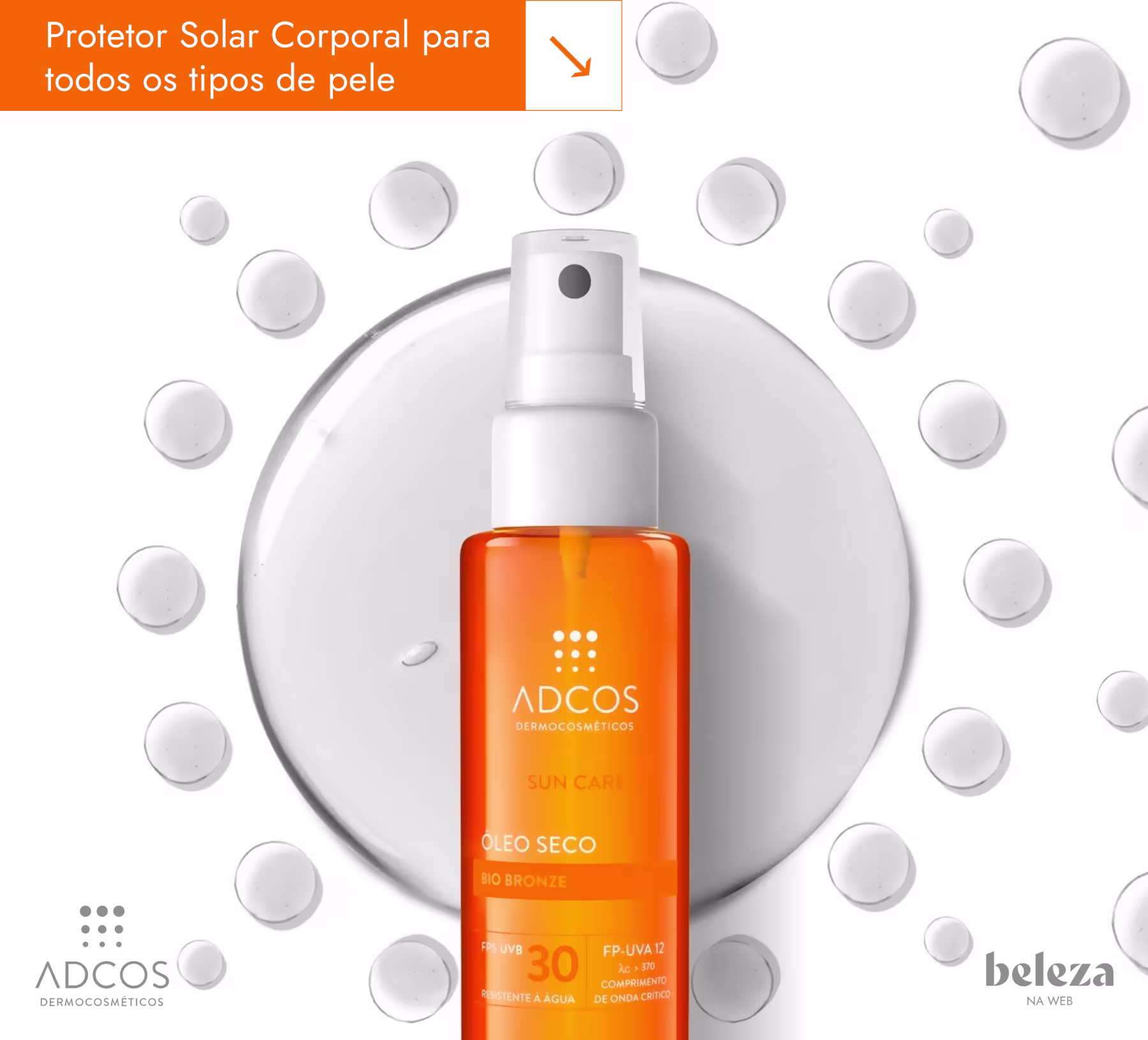 Óleo Seco Adcos Sun Care FPS30 para uma pele bonita e saudável. Melhores Produtos para a Pele de Adcos na BLZ. Ver mais ❯