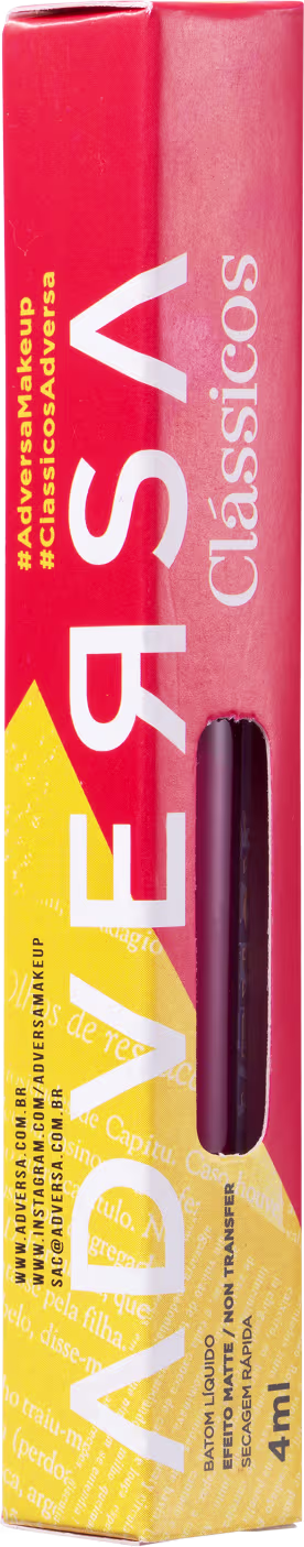O Batom Líquido ADVERSA Clássicos apresenta tons inspirados nas grandes personagens da literatura universal, que representam as heroínas à frente de seu tempo. Fórmula vegana de alta pigmentação e durabilidade, proporciona efeito aveludado e toque sequinho. Além disso, é livre de parabenos e crueldade animal.