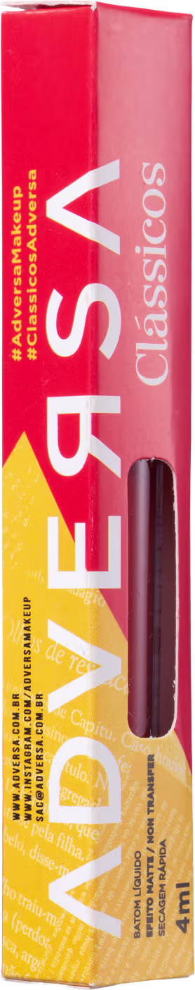 O Batom Líquido ADVERSA Clássicos apresenta tons inspirados nas grandes personagens da literatura universal, que representam as heroínas à frente de seu tempo. Fórmula vegana de alta pigmentação e durabilidade, proporciona efeito aveludado e toque sequinho. Além disso, é livre de parabenos e crueldade animal.