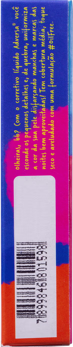 Corretivo líquido com acabamento matte. ADVERSA corrige marcas e imperfeições no rosto, com média cobertura e alta performance para uma pele uniforme!