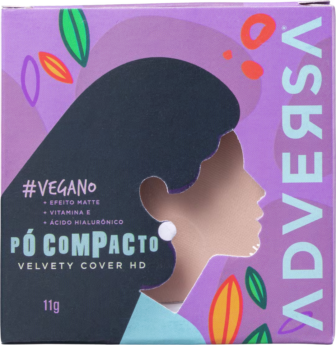 O Pó Compacto Adversa Velvety Cover HD Vegano conta com textura ultra macia e efeito HD, que proporcionam cobertura natural e toque aveludado. Além disso, possui ativos como a Vitamina E responsável por proteger a pele dos danos causados pela poluição e radicais livres e Ácido Hialurônico, que auxilia na prevenção do envelhecimento precoce enquanto hidrata e ajuda a manter a elasticidade. Assim, sua maquiagem vai ficar poderosa e intacta e a pele impecável.