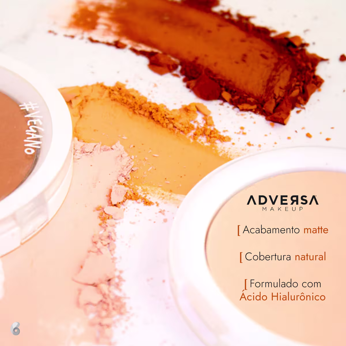 Pó compacto com acabamento matte. Adversa Velvety Cover HD Vegano combina os benefícios de maquiagem e skincare para uma finalização perfeita.