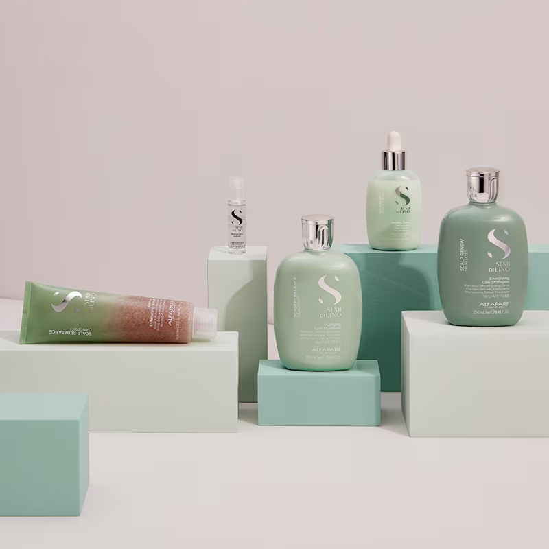 Shampoo Alfaparf Semi Di Lino Scalp Balancing revitaliza, reduz a oleosidade e previne os danos causados pelo stress e a poluição, que podem ocasionar comichão, vermelhidão, caspa, queda de cabelo temporária, produção excessiva ou insuficiente de sebo.