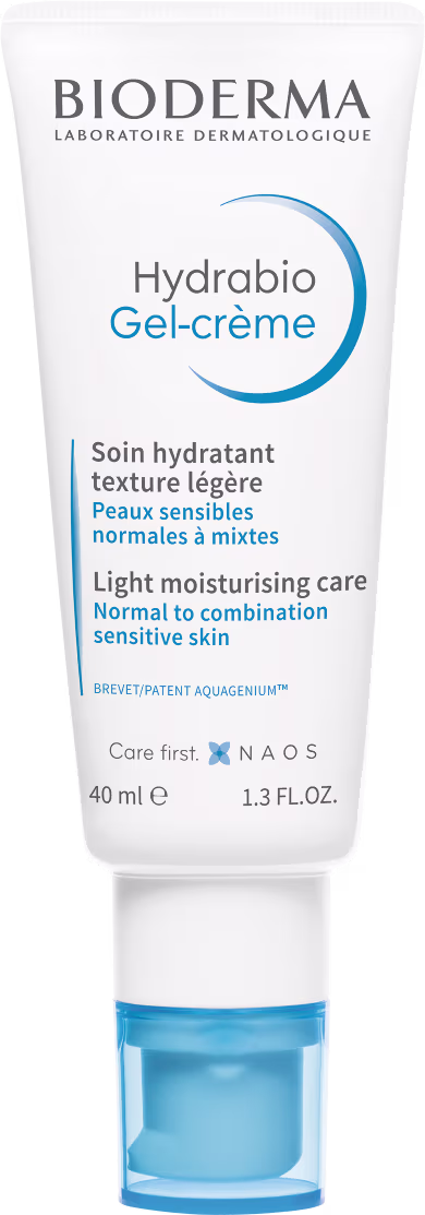 Hidratante restaurador facial para pele equilibrada a seca. Bioderma Hydrabio Gel-Crème hidratação e nutrição profunda de efeito imediato.