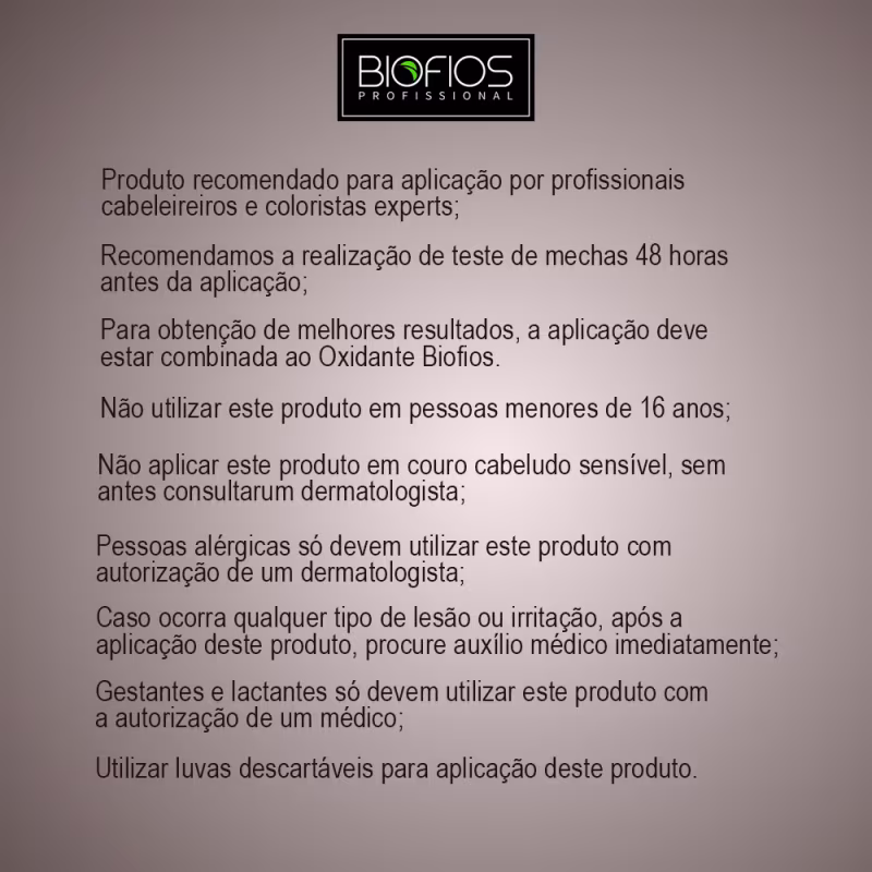 A Coloração Biofios Profissional foi desenvolvida e enriquecida com a ação antioxidante do Gojiberry, rica em aminoácidos, vitaminas, minerais, ácidos graxos, também possui ação protetora, preservando os cabelos dos danos causados pelo sol. Traz pigmentos de última geração que criam uma estrutura tridimensional com tratamento associado, revelando cores mais vivas, luminosas e duradouras.