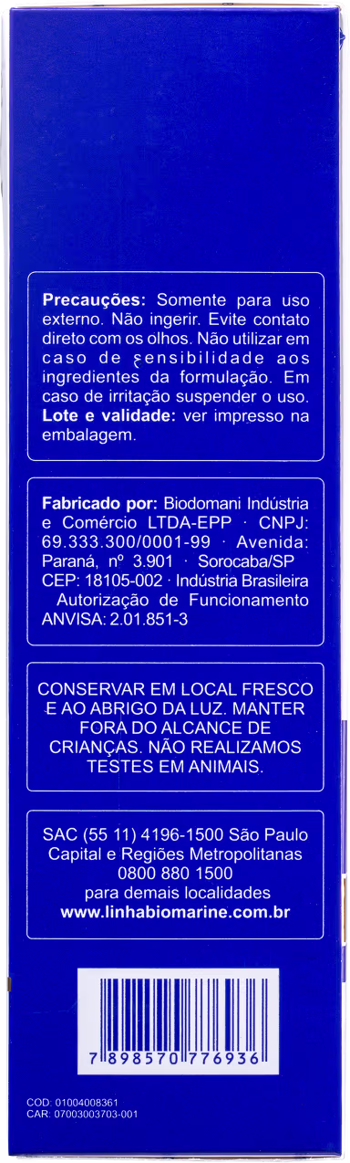 Biomarine Hyaluronic Cleanser conta com 10 tipos de Ácido Hialurônico que atuam na hidratação intensa. Assim, oferece limpeza eficaz sem ressecar a pele.