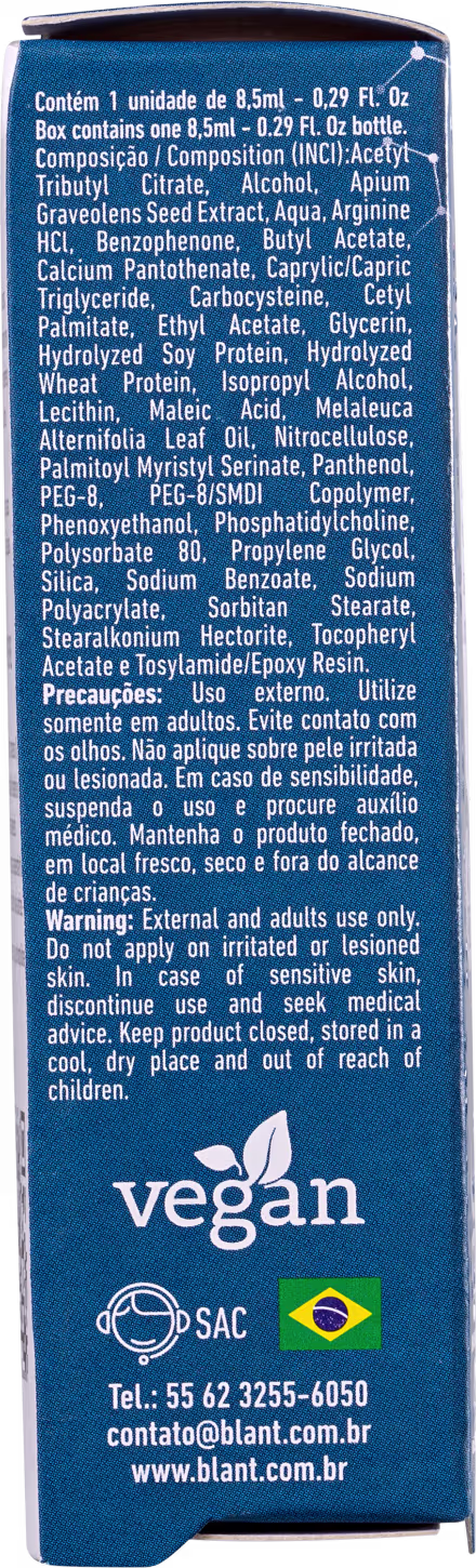 Blant Maximus Nail 10x1 é uma base vegana para unhas, que incorpora 10 ativos combinados a uma tecnologia inovadora. Sua ação é rápida, pois os complexos de microingredientes e ativos encapsulados nutrem a raiz e penetram nas camadas da unha para um cuidado intensivo de reparação total.