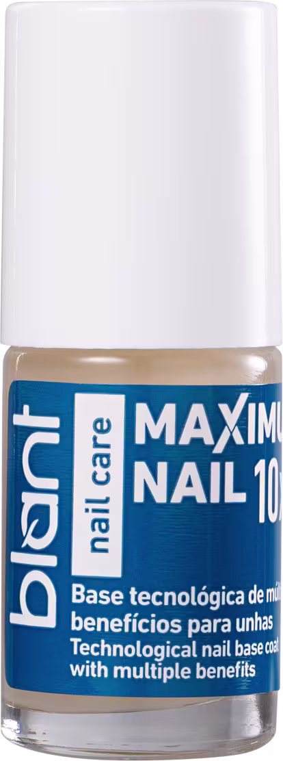 Base fortalecedora para unhas. Blant Maximus Nail 10x1 reúne múltiplos benefícios em um único produto para deixar as unhas mais resistentes, uniformes e saudáveis.