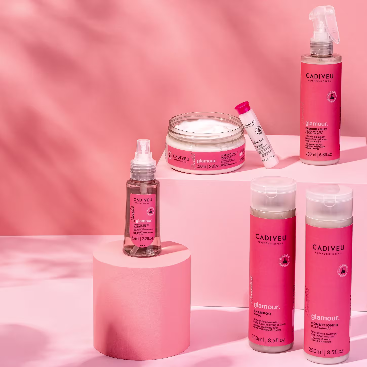 A linha Glamour Essentials, de Cadiveu Professional, além de uma formulação completamente natural, ela também possui uma excelente perfomance, garantindo fios três vezes mais fortes e hidratados.