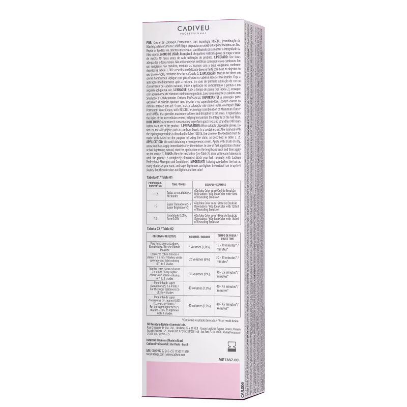 Coloração permanente. Cadiveu Professional Idea Color oferece uma cobertura completa dos fios brancos em todos os tipos de cabelo, além de proporcionar cor vibrante, brilho intenso e resultado duradouro.