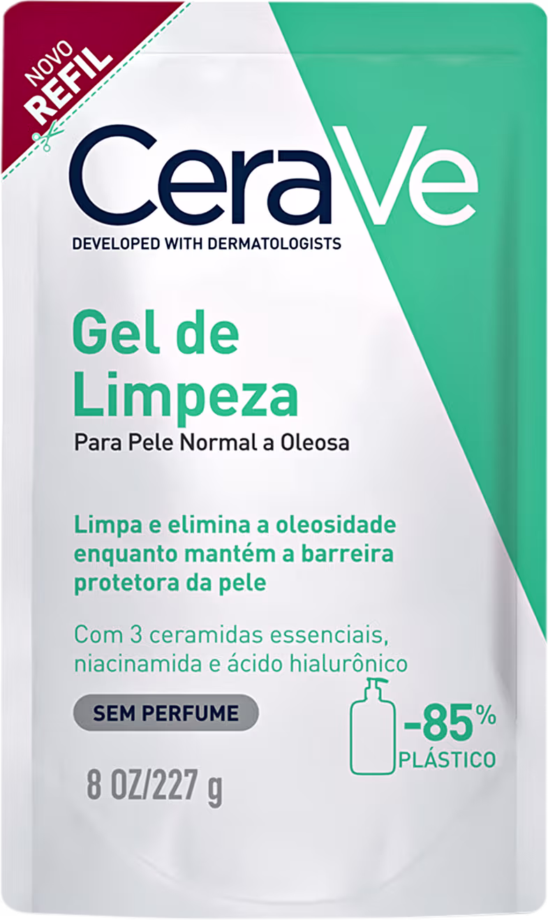 Gel de limpeza para peles equilibradas. CeraVe Refil promove uma limpeza suave, que remove a oleosidade excessiva, sem comprometer a barreira de proteção natural da pele.