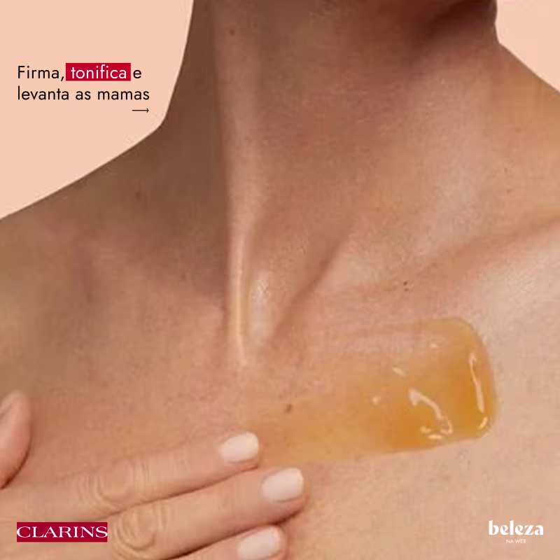 O Gel Firmador de Seios Clarins Bust Beauty Extra-Lift funciona como um "sutiã natural", dando um up na região do decote.