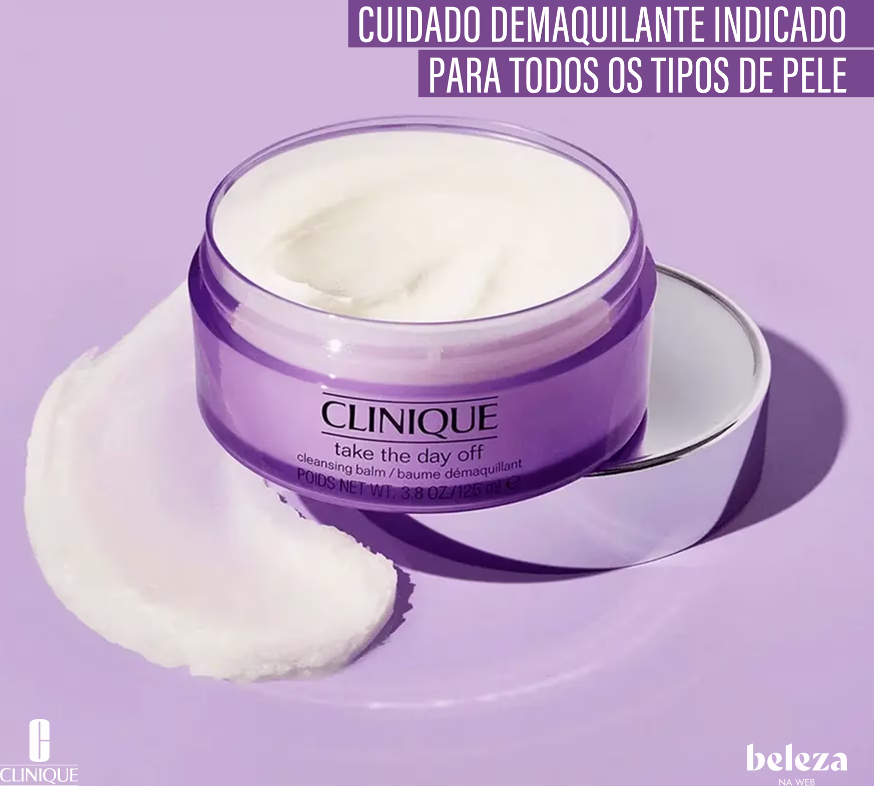Clinique Take The Day Off Cleansing Balm se transforma de um sólido bálsamo para um sedoso óleo, assim que aplicado na pele. Limpa completamente, ajuda a remover a poluição e deixa a pele com aspecto mais jovem, por mais tempo. Não resseca a pele e é testado por oftalmologistas.