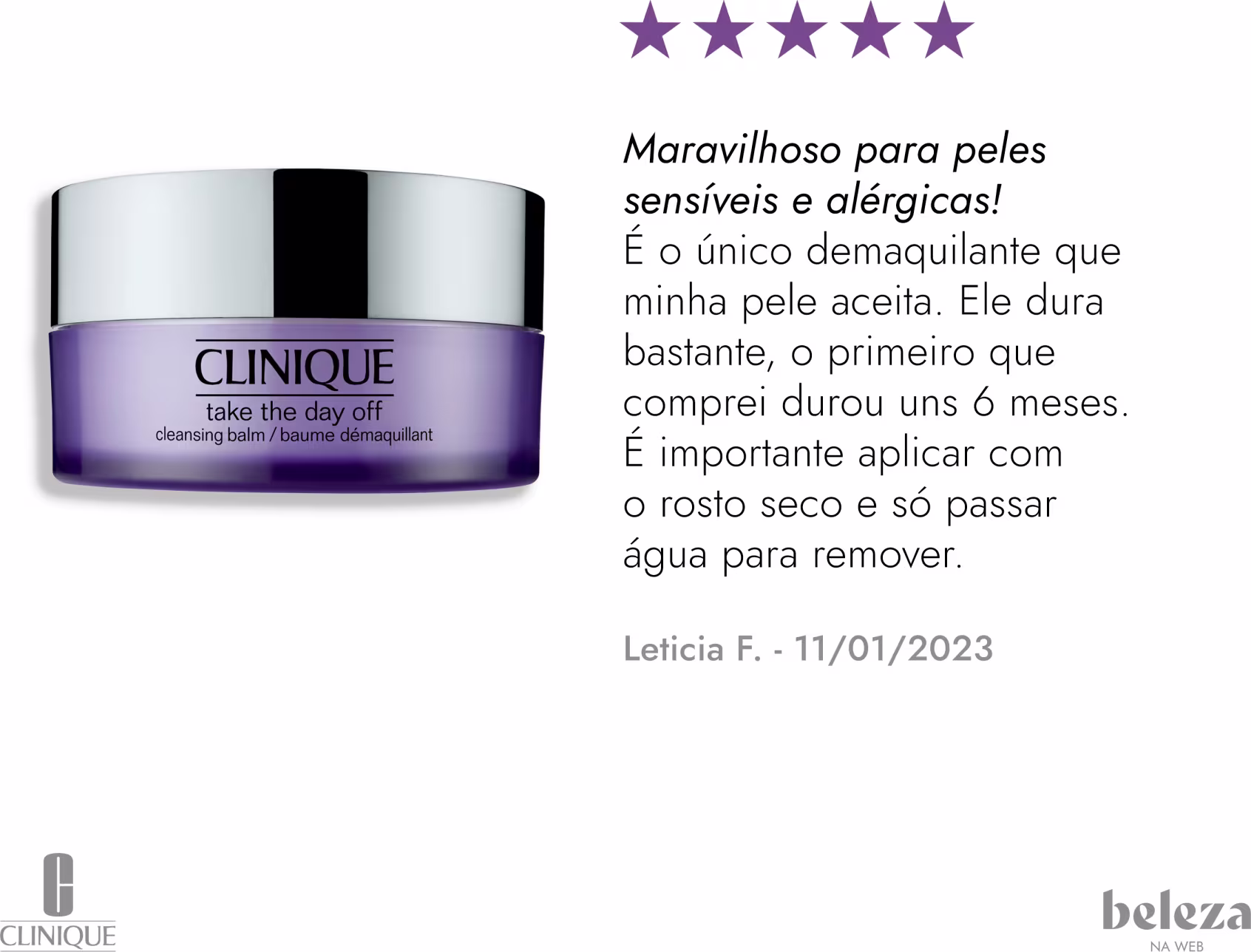 Avaliação postada no site Beleza na Web