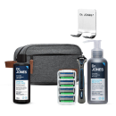 Este combo reúne o Nécessaire Grafite, Suporte de Parede, Cabo The Razor, Recargas The Razor 6, Balm The Shaving Solution e Shampoo Charcoal Beard Wash. Focado no design e saúde da barba, oferece limpeza profunda e alta precisão. O shampoo remove impurezas com ação detox, enquanto o balm transparente permite visualizar perfeitamente onde passar a lâmina para alinhar os fios.