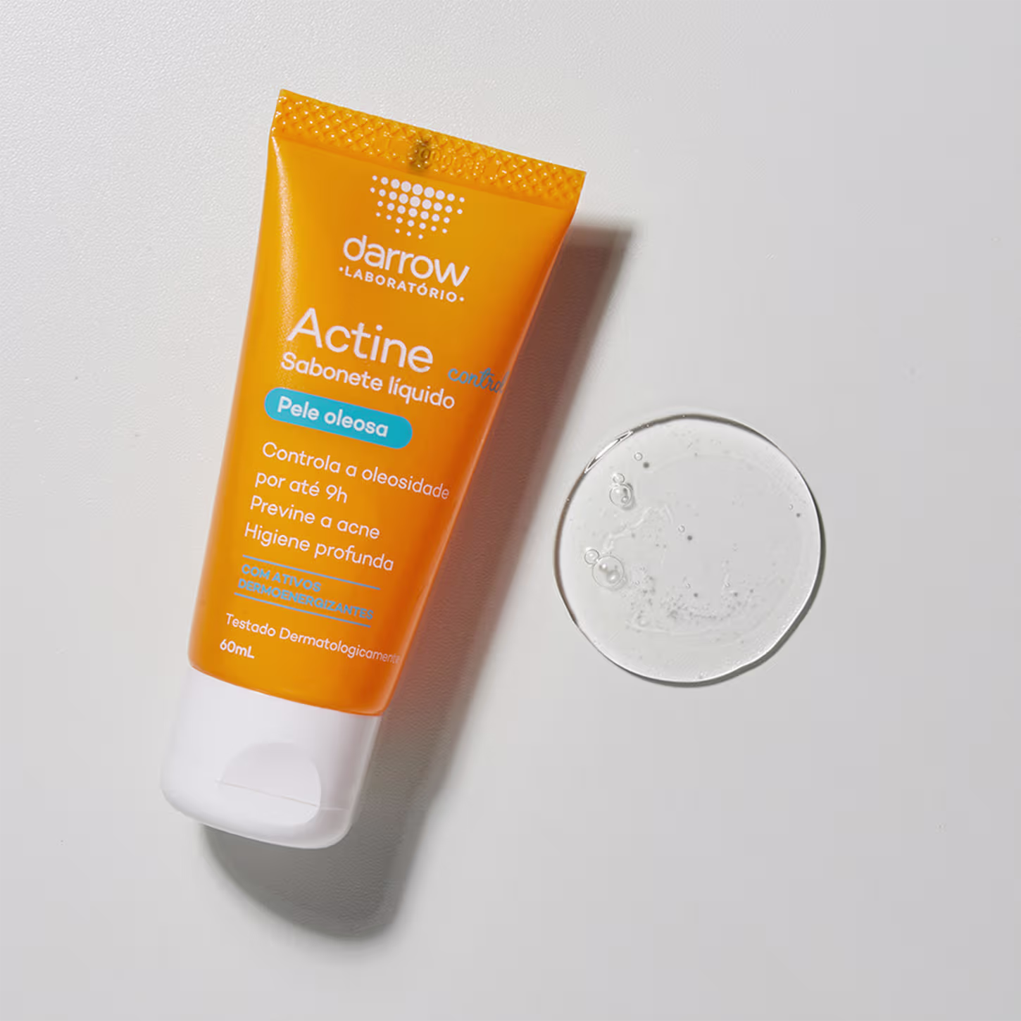 Sabonete Líquido de Limpeza Facial para peles mistas e oleosas. Darrow Actine Control remove as impurezas, reduzindo a secreção de acne e cravos.