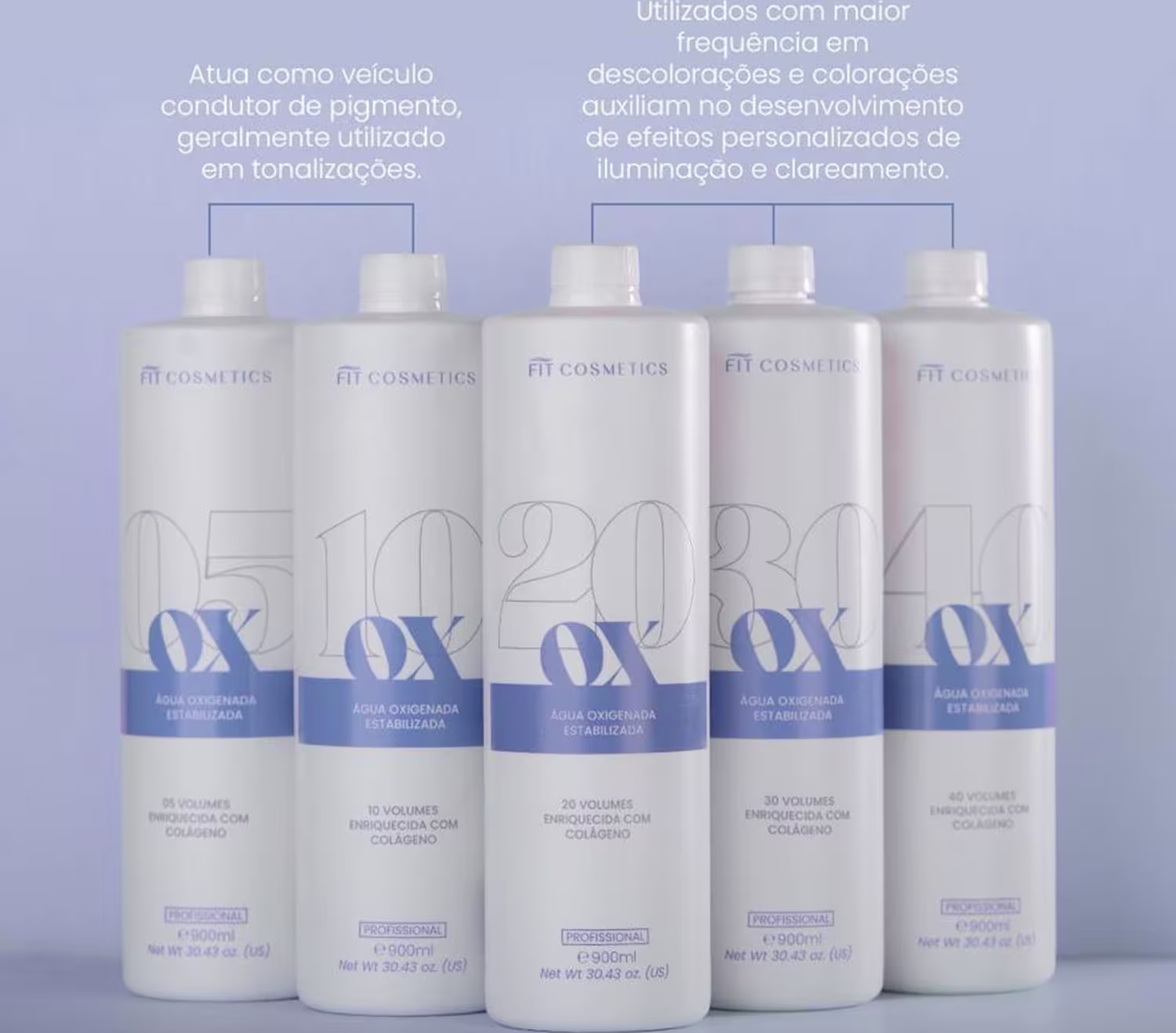 É indicada para uso profissional, em combinação com colorações e pós descolorantes Fit Cosmetics. Ideal para todos os tipos de cabelo, incluindo fios frágeis, sensibilizados ou quimicamente tratados. Deve ser utilizada seguindo rigorosamente a técnica profissional e os tempos de ação recomendados para cada volumetria.