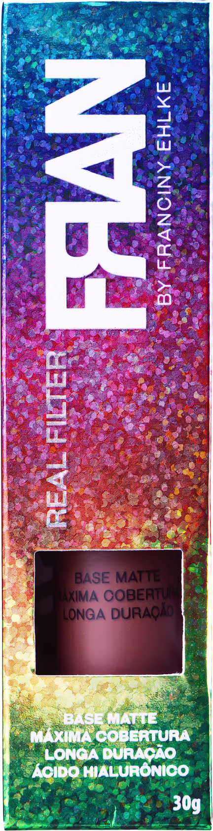 A Base Líquida Fran by Franciny Ehlke Real Filter vai dar aquele acabamento matte impecável para a sua make, além da longa duração e resistência à água, que serão seus aliados no dia a dia. O Ácido Hialurônico e a Vitamina E juntos na fórmula, fazem a diferença no disfarce dos poros, hidratação e anti-oxidação. Disponível em 12 tons.
