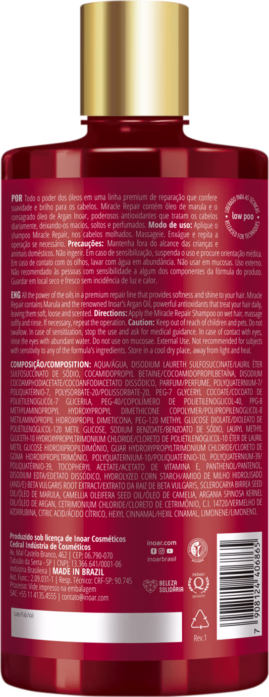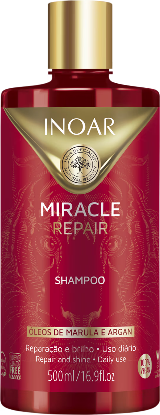Compre Shampoo Inoar Miracle Repair para repara os fios diariamente, proporcionando brilho intenso. Garanta melhores ofertas e Shampoos de Inoar na BLZ PRO. Ver mais ❯