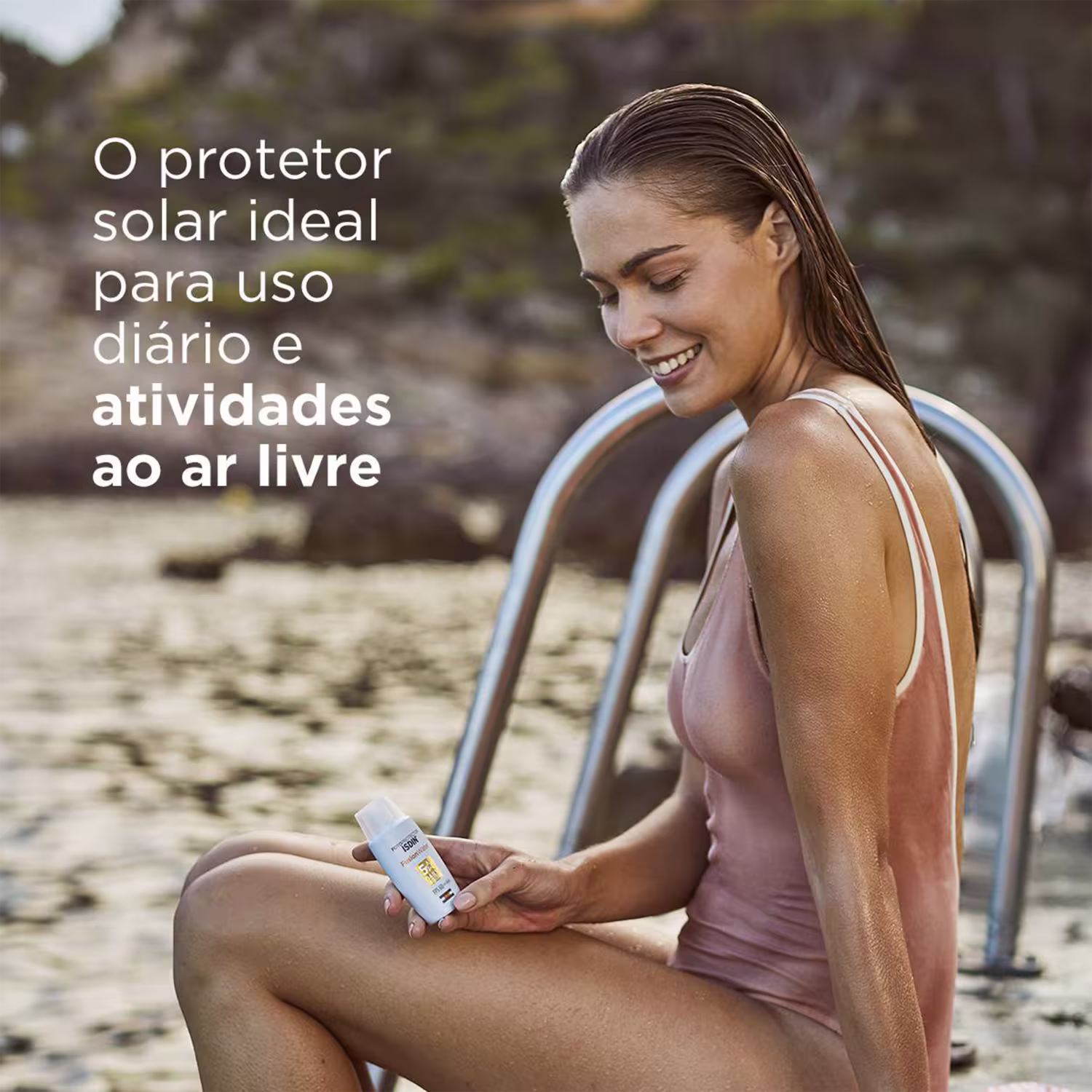 O Protetor Solar Facial ISDIN Fotoprotector Fusion Water FPS 60 oferece alta proteção solar diária, sem pesar na pele. Sua textura ultraleve é rapidamente absorvida sem deixar resíduos, ideal para o uso diário e durante atividades ao ar livre. Sua fórmula enriquecida com Ácido Hialurônico, promove hidratação prolongada, toque seco e controle da oleosidade. A tecnologia Wet Skin permite a aplicação, inclusive em pele molhada, sem comprometer a fotoproteção.