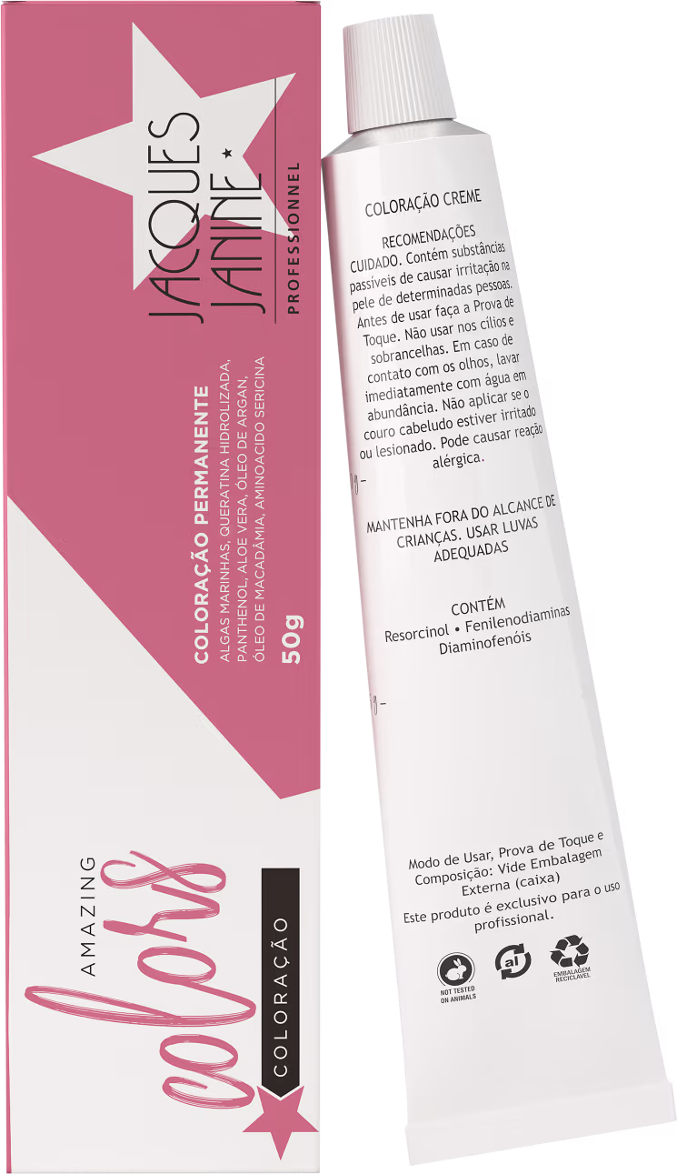 Coloração Permanente Jacques Janine Professionnel Amazing Colors foi desenvolvida especialmente para uso profissional com um sistema de coloração seletiva, que intensifica a ação e oferece resultado uniforme, enquanto hidrata os fios e devolve o brilho à fibra capilar.