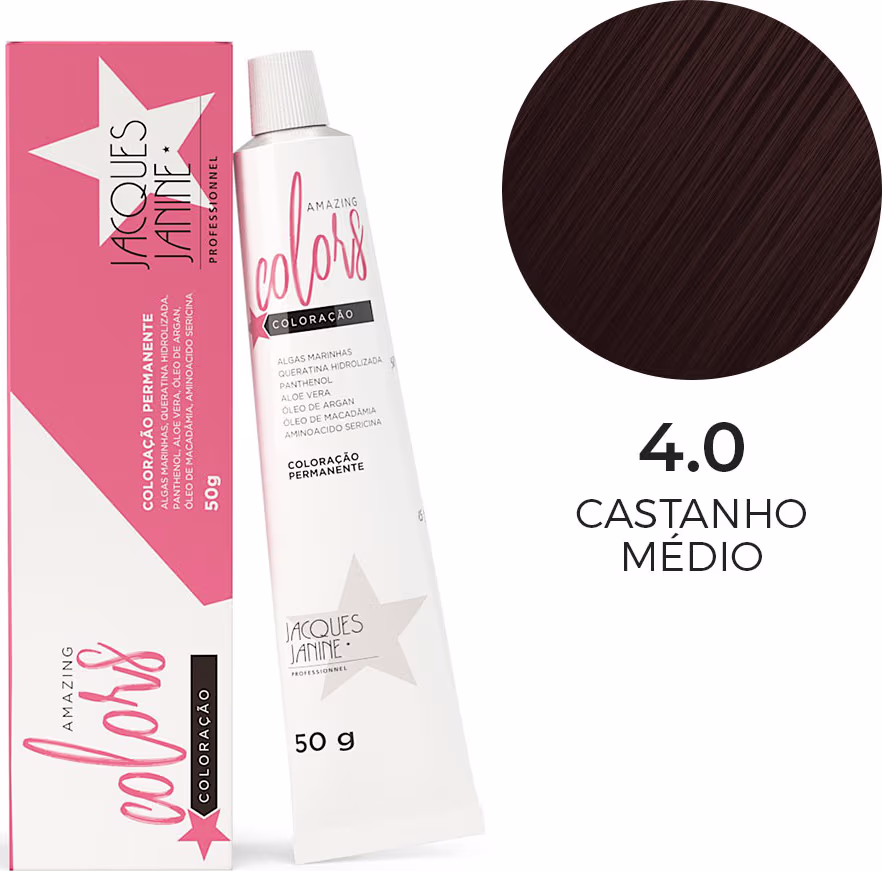 Jacques Janine Professionnel Amazing Colors 4.0 Castanho Médio - Coloração Permanente 50g