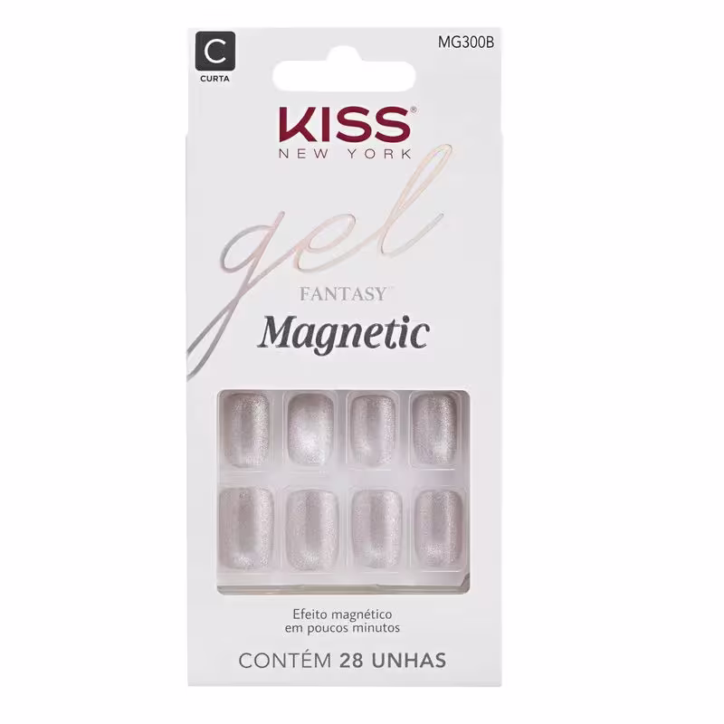 Unhas postiças curtas de acabamento em gel. Kiss New York Fantasy Magnetic Nail Curta conta com efeito magnético, textura aveludada e encaixe incrível.