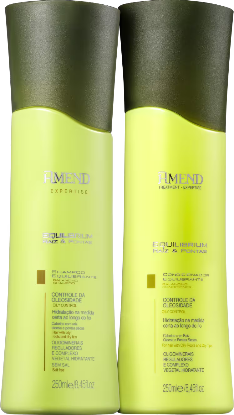 A linha Equilibrium Raiz & Pontas, da Amend, foi formulada para proporcionar um tratamento que diminui o excesso de oleosidade, ao mesmo tempo em que preserva a vital hidratação dos fios, além de sensação de frescor.