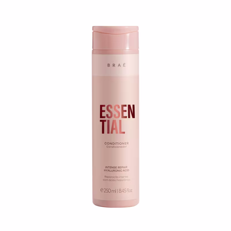 Braé Essential - Condicionador 250ml: possui ação de nutrição e reparação, que condiciona os fios, promovendo hidratação progressiva e protege o cabelo contra agressões diárias e térmicas. Com ácido hialurônico, aminoácidos e complexo de óleos, os cabelos ficam macios e com brilho. Possui proteção térmica.