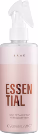 Braé Essential Hair Repair Spray - Leave-in 260ml: fluido finalizador reparador com proteção térmica, para todos os tipos de cabelos. Ele repara, hidrata, protege, reconstrói e proporciona brilho intenso aos fios. Pode ser utilizado como finalizador ou tratamento reparador.