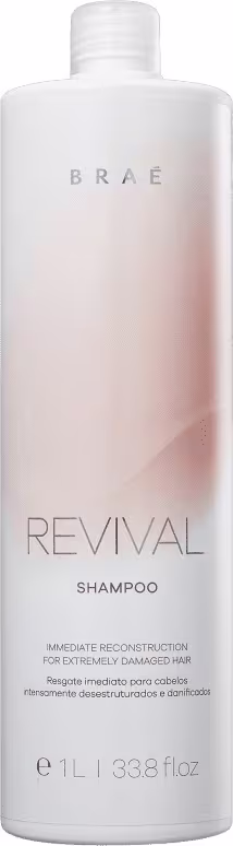 Braé Revival - Shampoo 1L: Shampoo para cabelos extremamente danificados que proporciona uma limpeza suave sem ressecar enquanto repara os danos e prepara os fios para o tratamento completo de reconstrução.