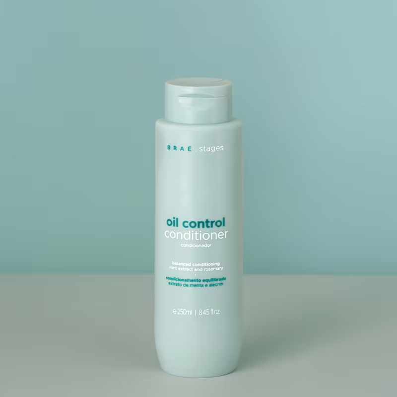 Braé Stages Oil Control - Condicionador 250ml: para cabelos oleosos ou mistos. Promove hidratação suave do comprimento às pontas, proporcionando uma sensação refrescante. Sua fórmula combina extrato de menta e alecrim, proporcionando condicionamento equilibrado e uma sensação refrescante. Cabelos mais soltos, macios e com brilho.