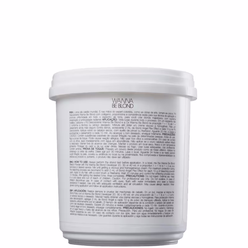 Sua ação é potencializada quando combinada com o oxidante Wanna Be Blond, garantindo clareamento uniforme e fios protegidos, sem comprometer a saúde capilar.