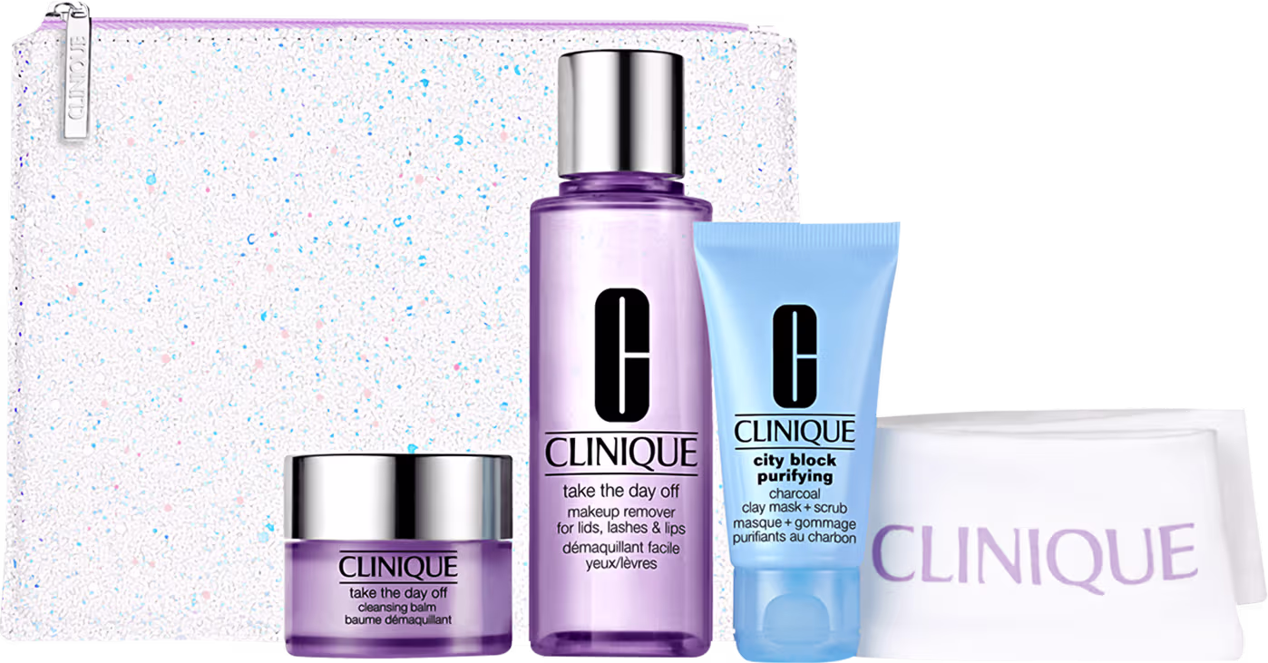 Kit Clinique Take the Day Off, ajuda a limpar e purificar a aparência do rosto. Melhores Kits de Cuidados para face Clinique na BLZ Ver mais ❯
