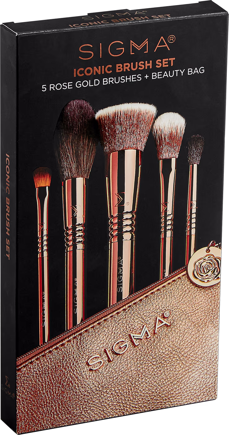 Com cerdas sintéticas exclusivas, Kit de Pincéis Sigma Beauty Iconic desliza com facilidade na pele e garante uma aplicação de alta qualidade. Além disso, os pinceis possuem acabamento em ouro rosé e um lindo nécessaire perfeito para levar na bolsa.