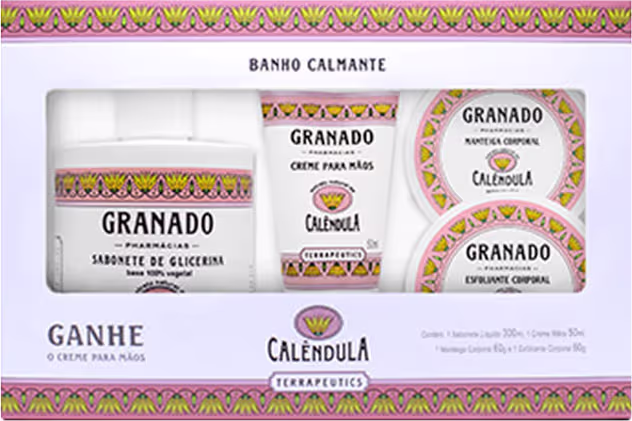 Kit Granado Terrapeutics Calêndula Corpo e Banho contém os cuidados completos necessários para uma pele bem cuidada, livre de impurezas, hidratada e macia. Oferece um tratamento suave e livre de irritações ou alergias.
