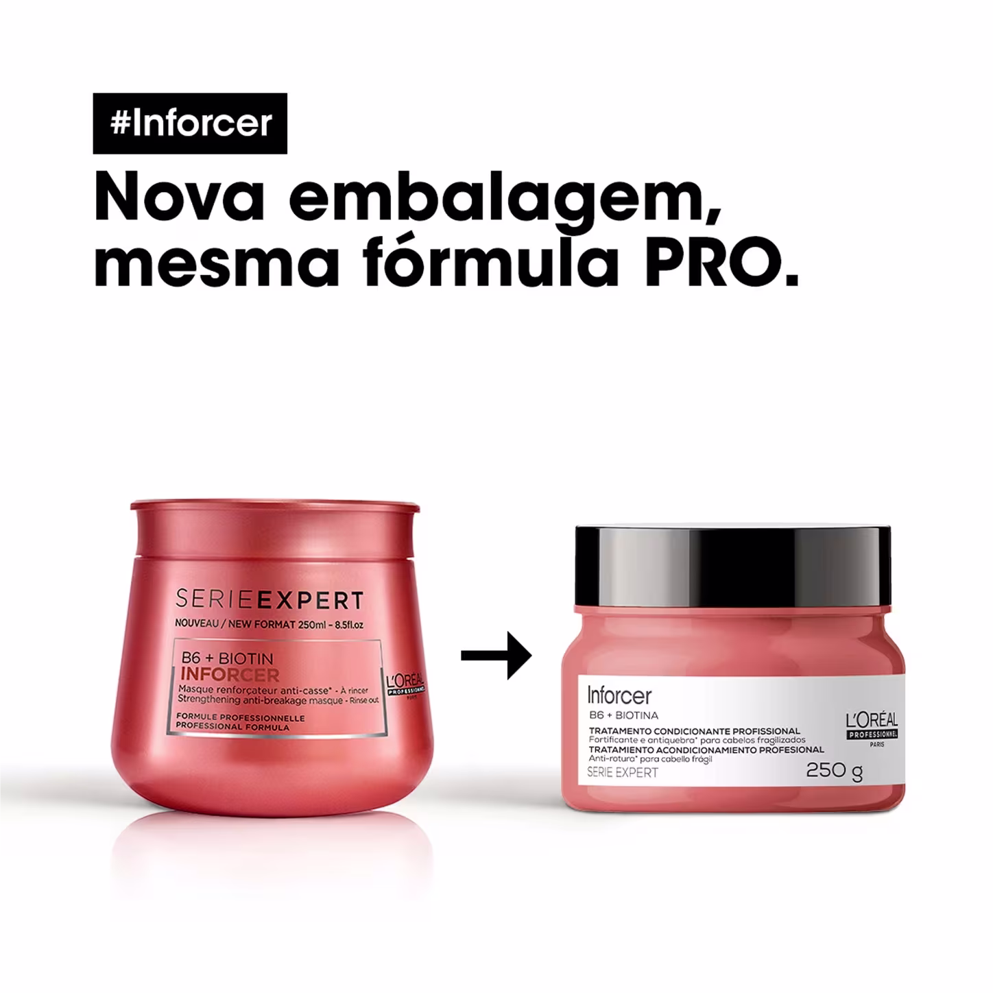 O Kit L'Oréal Professionnel Absolut Repair Molecular + Inforcer Masks traz uma máscara, um tratamento intensivo para cabelos fragilizados, que devolve a força, a resistência e a vitalidade aos fios, enquanto a outra com sua fórmula de última geração, repara os danos e fortalece a fibra capilar.