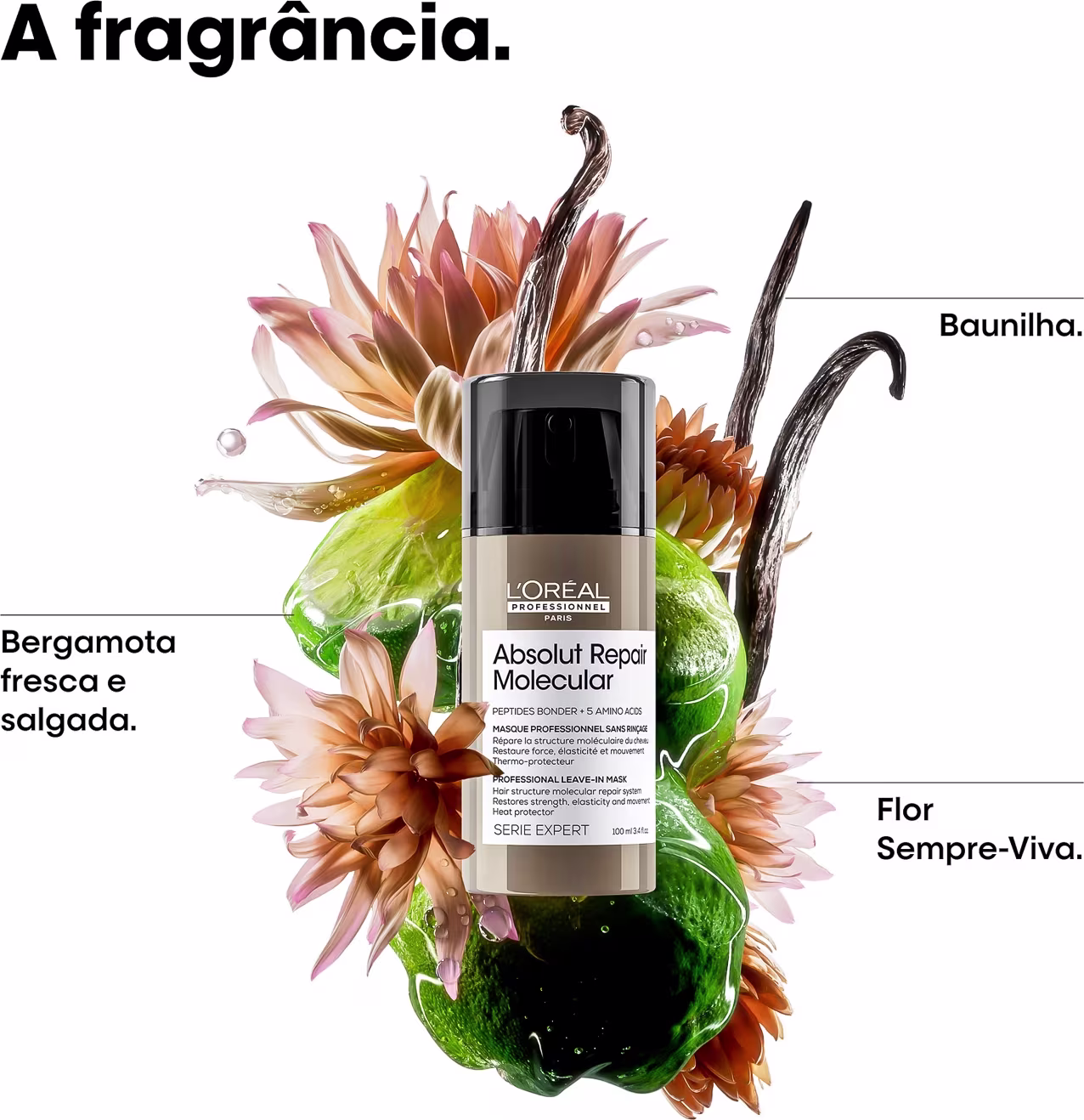 O Kit L'Oréal Professionnel Absolut Repair Molecular traz a combinação poderosa de shampoo, máscara capilar e leave-in, formulados com tecnologia de ponta para uma reparação profunda e duradoura. A fórmula eficaz ajuda a proporcionar resultados visíveis, como maior maciez, movimento, força, elasticidade e controle do frizz.