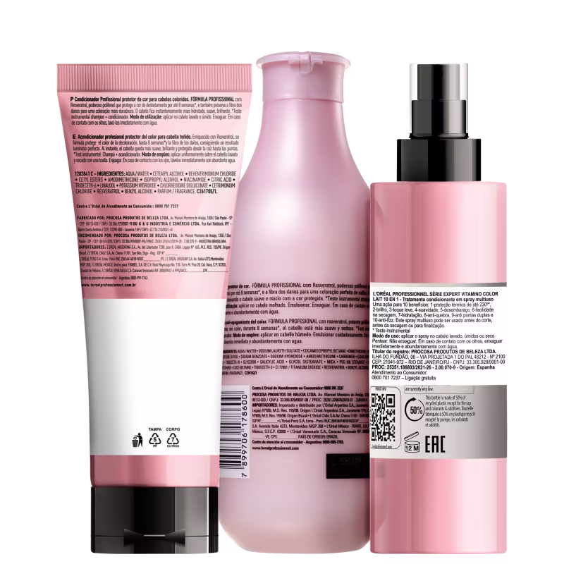 O Kit L’Oréal Professionnel Serie Expert Vitamino Color Resveratrol promove cuidado especial para os cabelos com coloração. Enriquecido com Resveratrol, ajuda a proteger e manter a cor da coloração por mais tempo, prevenindo o desbotamento e ao mesmo tempo deixando os cabelos com luminosidade e toque leve e suave.