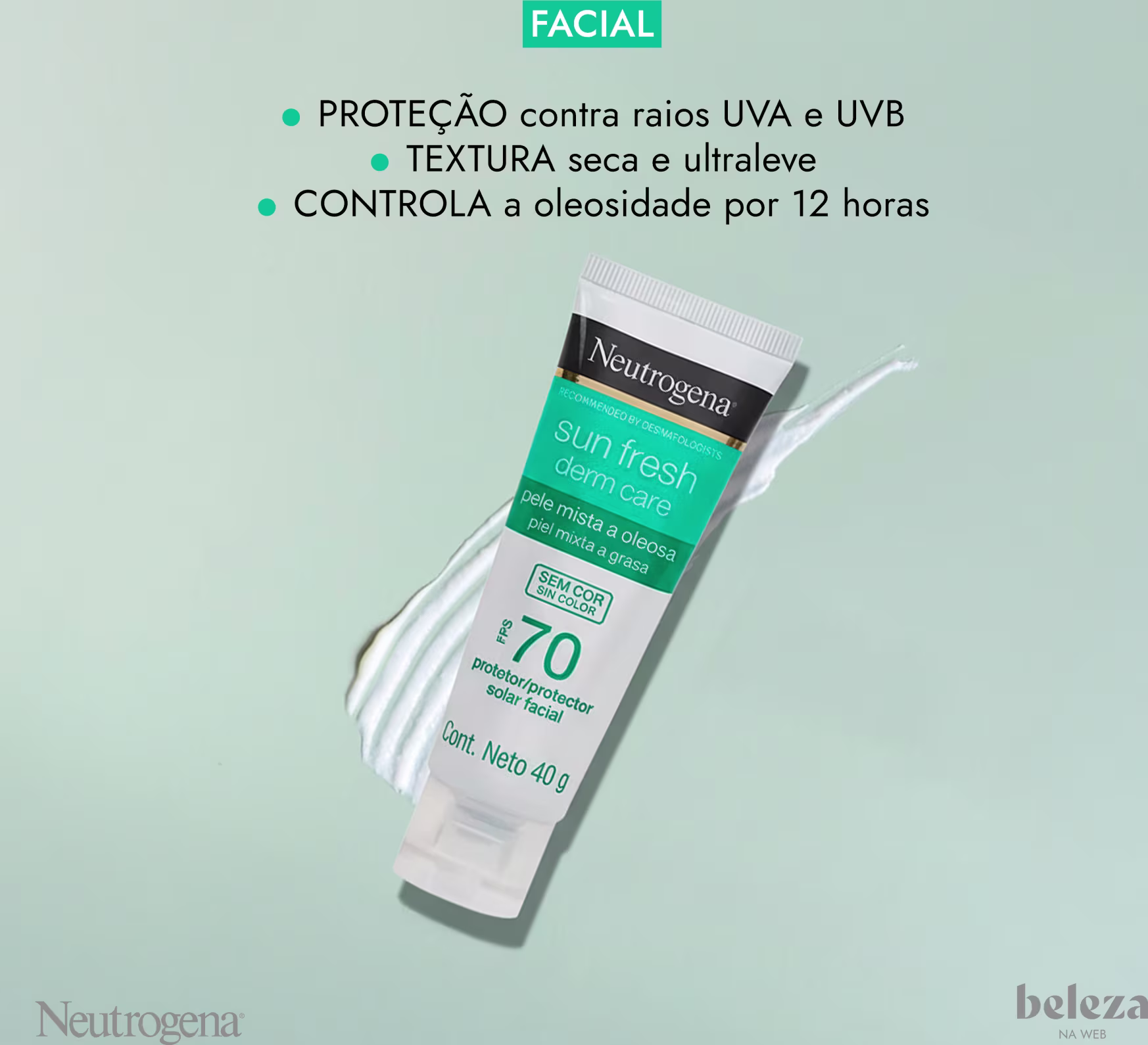 Neutrogena Sun Fresh FPS 70 - Protetor Solar Facial 40ml: Para todos os tipos de pele, inclusive as mais sensíveis.