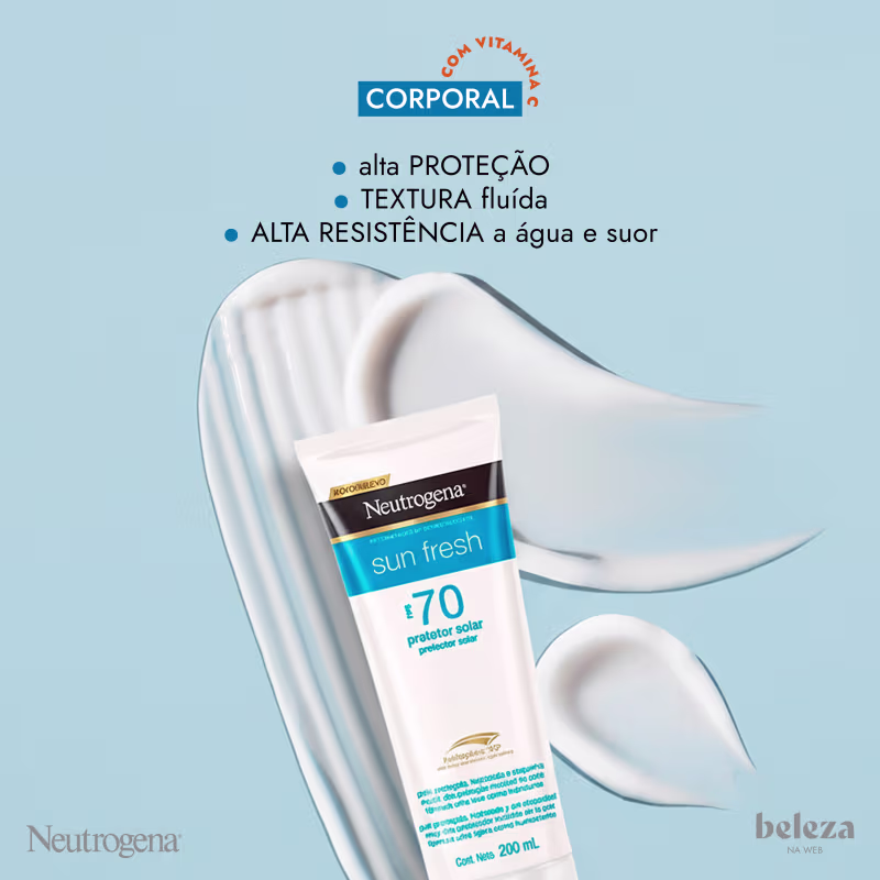 Neutrogena Sun Fresh FPS 70 - Protetor Solar 200ml: Protege o corpo dos raios UVA e UVB.