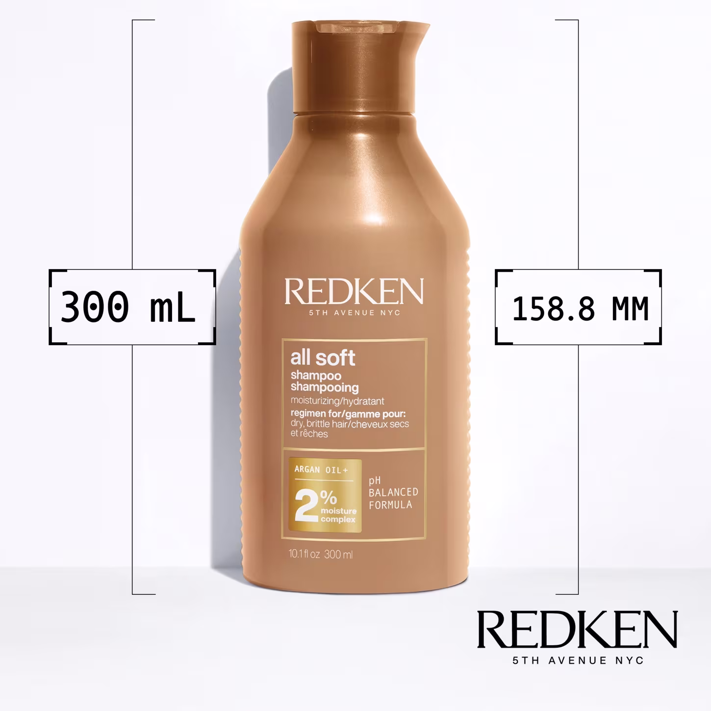 All Soft, da Redken, é a linha mais vendida da marca, super rica em proteínas, nutrição para os fios, mas com foco em hidratação. É um equilíbrio de tratamento indicado para cabelos ressecados, que chegam a quebrar justamente por conta desse ressecamento. Suas embalagens possuem roupagem mais científica, com informações técnicas simplificadas, além de ter, nas de tamanho padrão, barras antiderrapantes nas laterais para maior segurança no manuseio. A sua textura é mais densa e, quando o produto estiver chegando ao fim, uma dica é deixar o frasco de ponta cabeça para facilitar a utilização.