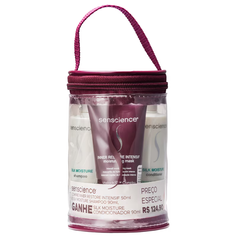 O Kit Senscience Inner Restore Moisture Travel Size foi desenvolvido para cabelos secos, danificados ou com processos químicos, hidrata, repara e nutre a fibra capilar devolvendo ao cabelo força e muita maleabilidade.