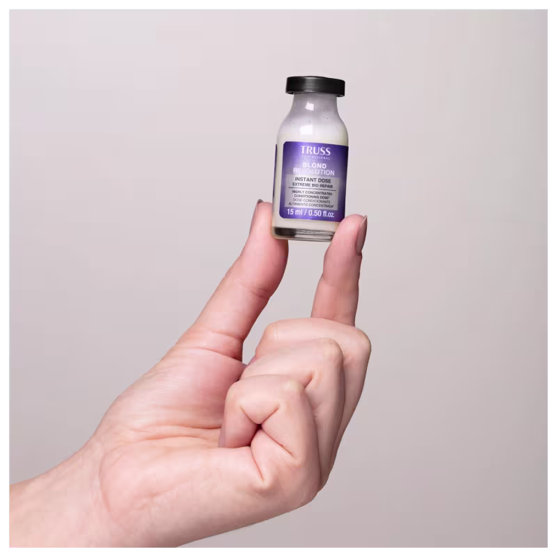 Blond Revolution, de TRUSS, entrega resultados visíveis, protegendo a fibra capilar contra novos danos e prolongando a intensidade da cor. É ideal para profissionais que desejam proporcionar loiros intensos e radiantes.