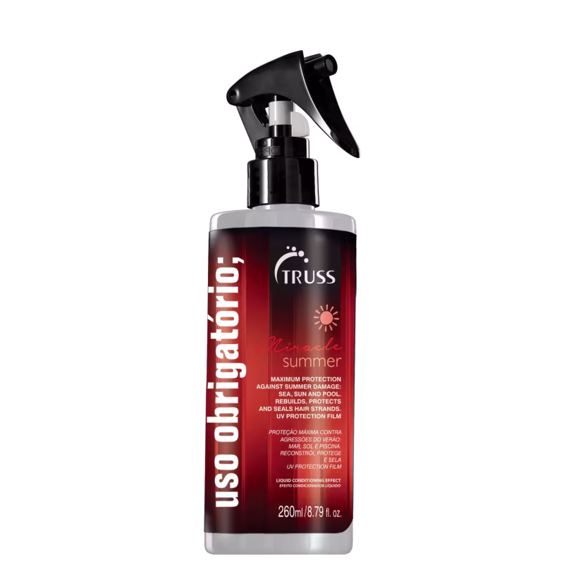 O Kit TRUSS Uso Obrigatório Miracle Summer + Frizz Zero + Night Spa age profundamente nos fios, proporcionando hidratação intensa, selagem da cutícula capilar e um brilho radiante, além de oferecer proteção UV.