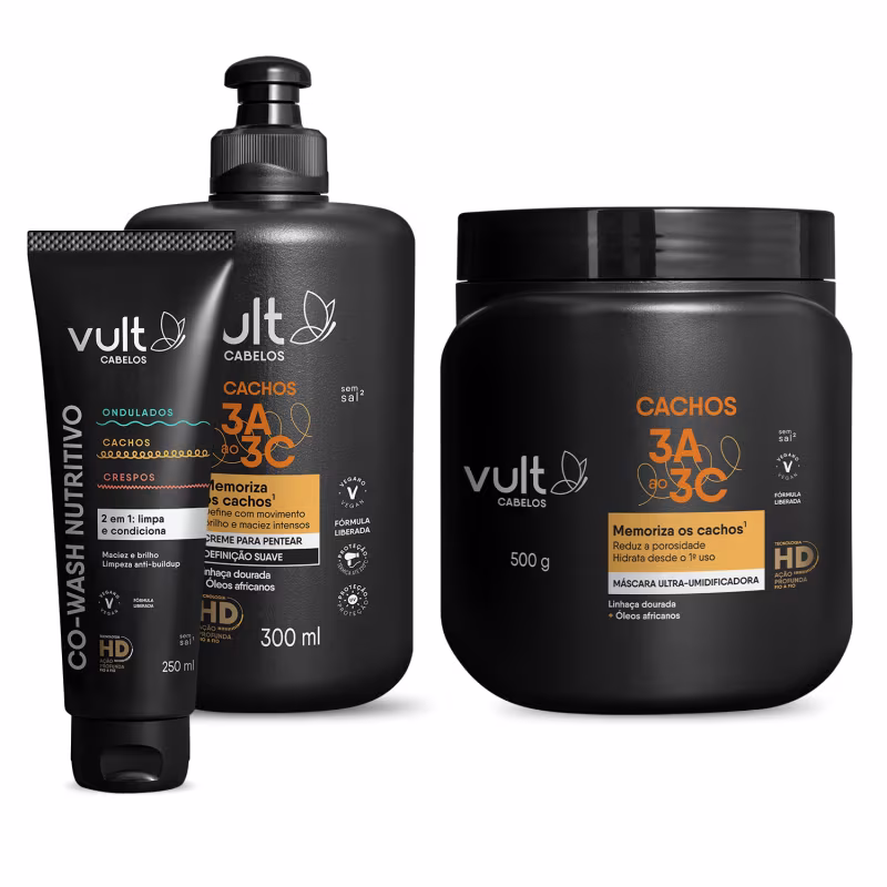 Kit Vult Cabelos Ondulados Cachos Crespos (3 Produtos)