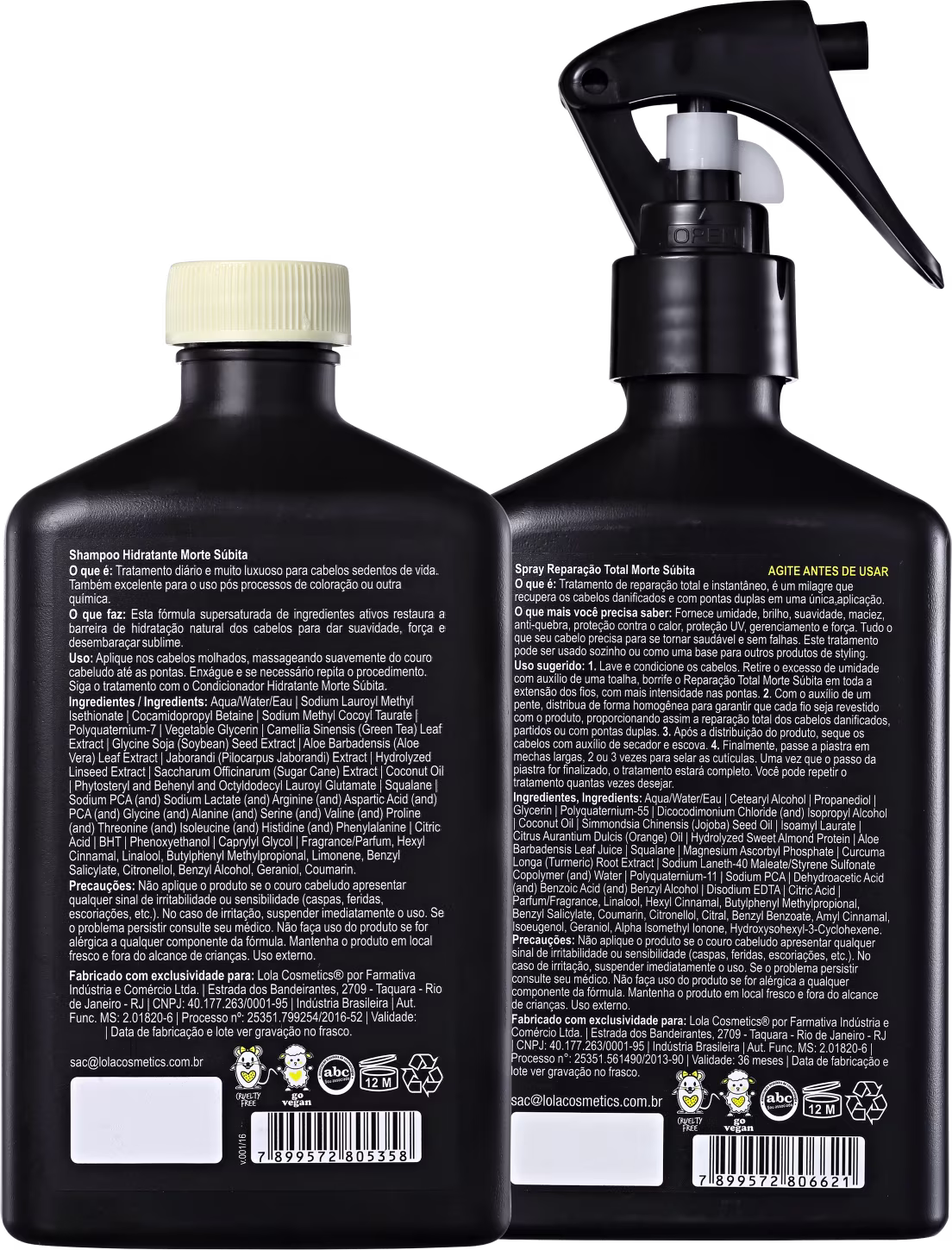 Kit com shampoo e tratamento para cabelos danificados. Lola Cosmetics Morte Súbita Basic proporciona a restauração do brilho e da maciez dos fios fragilizados.
