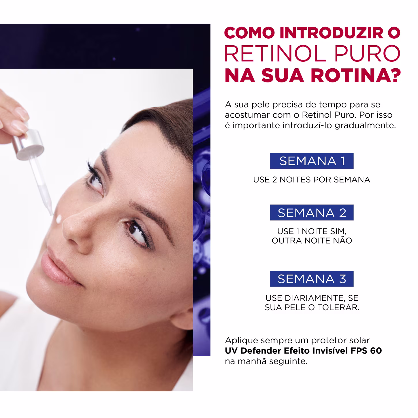 Sérum facial noturno. L'Oréal Paris Revitalift Retinol melhora a textura da pele, uniformiza o tom e corrigir as rugas mais profundas.