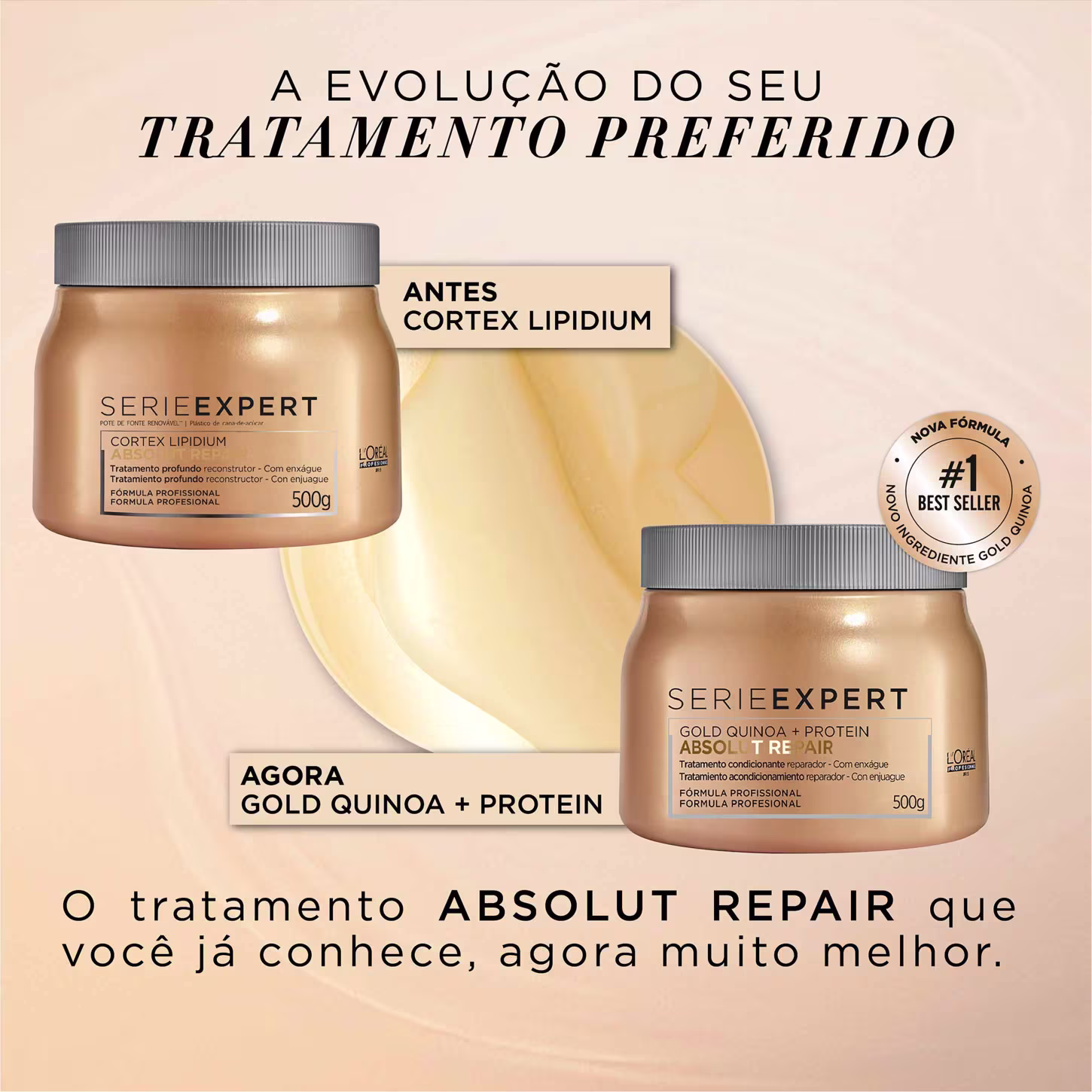 Os produtos da linha Absolut Repair foram repaginados com novos ativos para restaurar a saúde e o aspecto sedoso dos cabelos danificados e sensibilizados. Sua nova versão Absolut Repair Gold Quinoa + Protein traz mais benefícios e eficácia no tratamento dos fios.