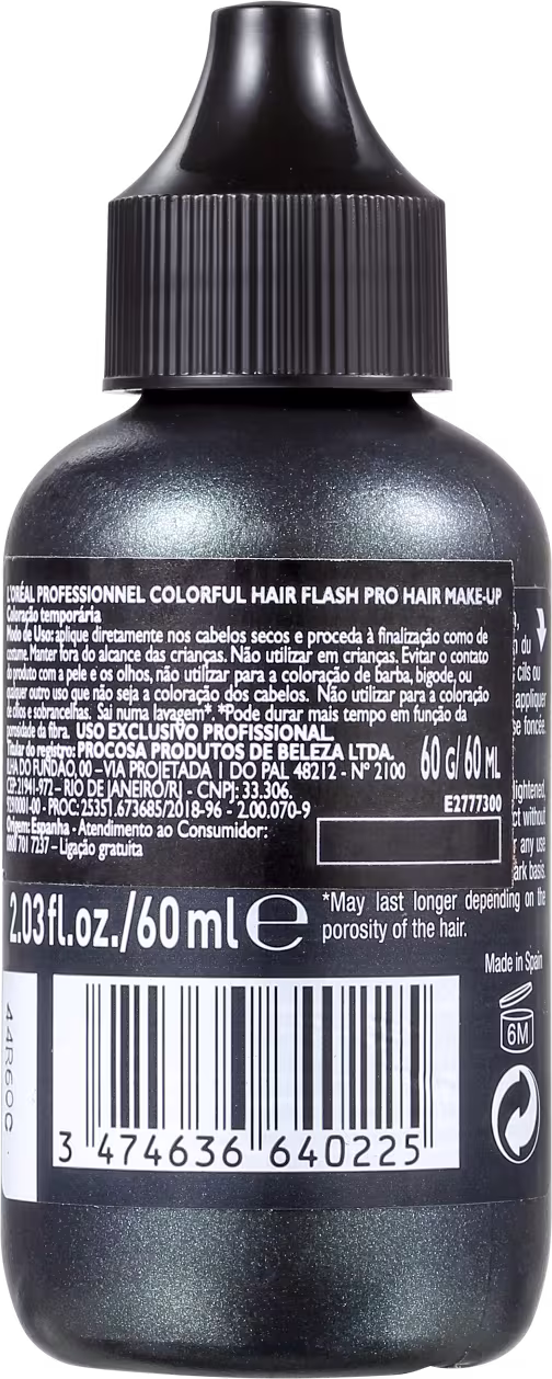 Tonalizante temporário. L'Oréal Professionnel Colorful Hair Flash Pro Hair Make-Up traz cores metalizadas e holográficas fáceis de aplicar e remover. Como não precisa de descoloração, até os fios mais escuros podem ficam intensamente coloridos.